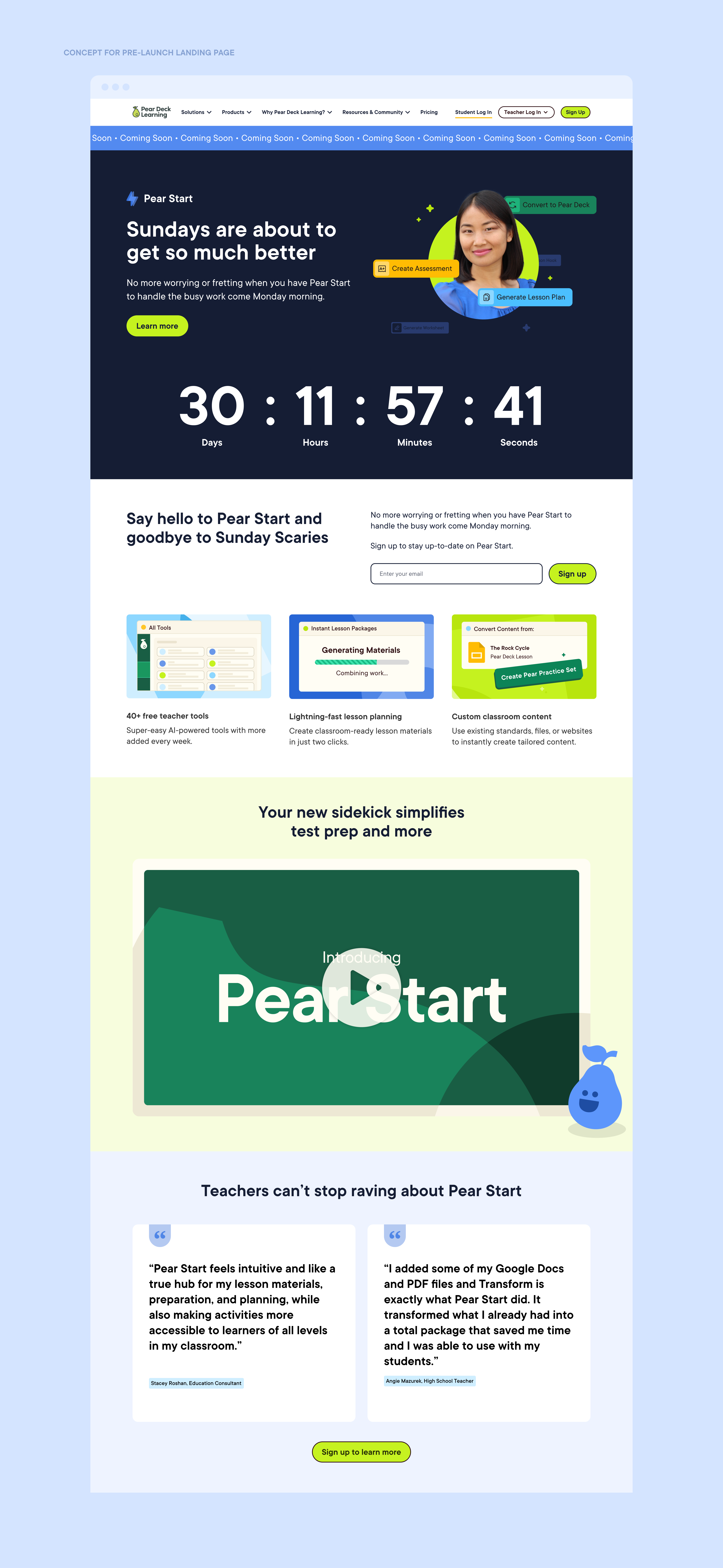 teacher sign-ups attained pre-launch through Pear Start product landing page.
